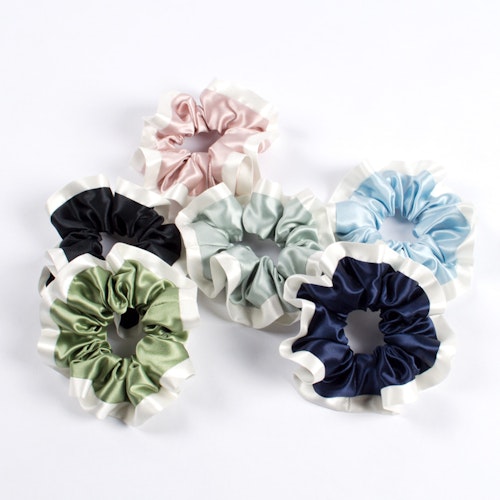 This hair scrunchie is made of Silk Fabric, whose fibers contain 100% amino acids and have a very similar structure with that of the human hair. So, it has many benefits to the hair. With a durable rubber band, it could band your hair well and avoid your hair from being hurt. Solid-color design goes perfectly with all your outfits.